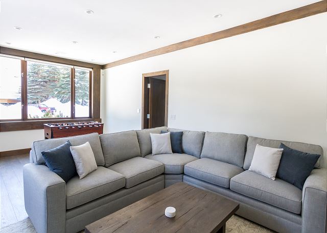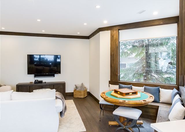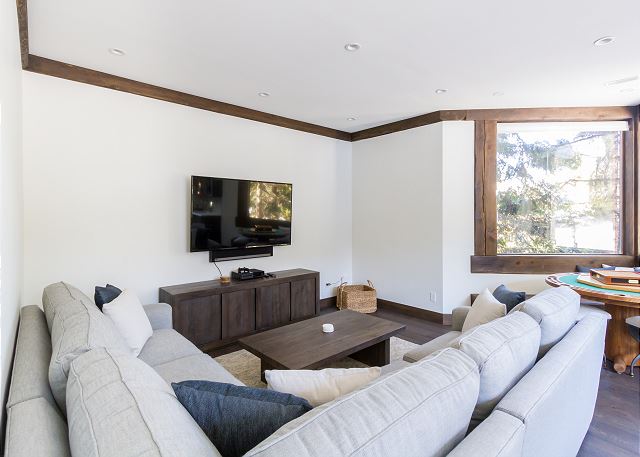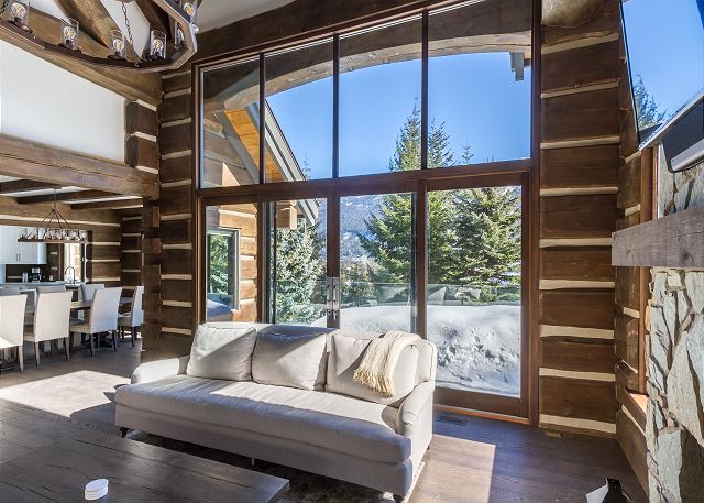 A large living space, games/media room, gourmet kitchen and a private 2 car garage with extra parking makes this the place to be if you want to share a large friend/family vacation with glorious view, yet minutes from Whistler Village!